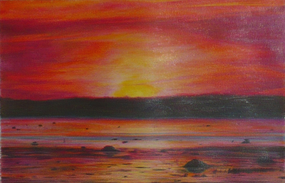 "Coucher de soleil n°1", crayons de couleurs sur papier canson, 31x20cm,