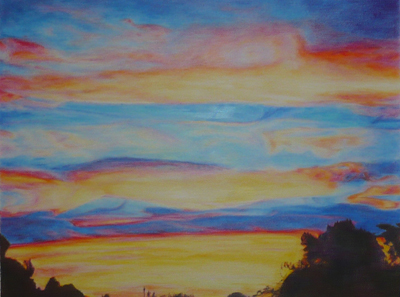 "Coucher de soleil n°2", crayons de couleurs sur papier canson, 46x61cm,