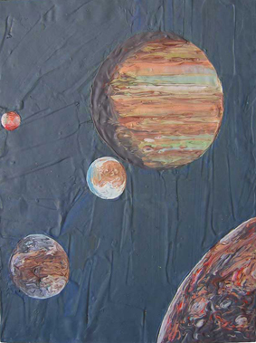 "Planètes", couche épaisse de latex acrylique, 67x51cm, 450 Euros |