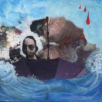 "Nageuses", collages à 4 mains, technique mixte, 20cm/20cm, 80 € |