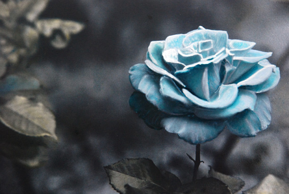 "Rose bleue", photographie n&b 18x24 cm, papier RC, peinture à l'encre